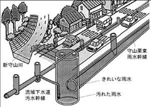 ・管渠の雨水貯留機能を利用し、汚濁物質を含んだ水を流域下水道汚水幹線に排出して、処理する計画がなされている