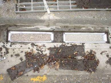 ・フィルターでろ過した後、道路下の路盤に導水し、砕石の空隙に貯留しながら路床から地中へ浸透させる構造 です。